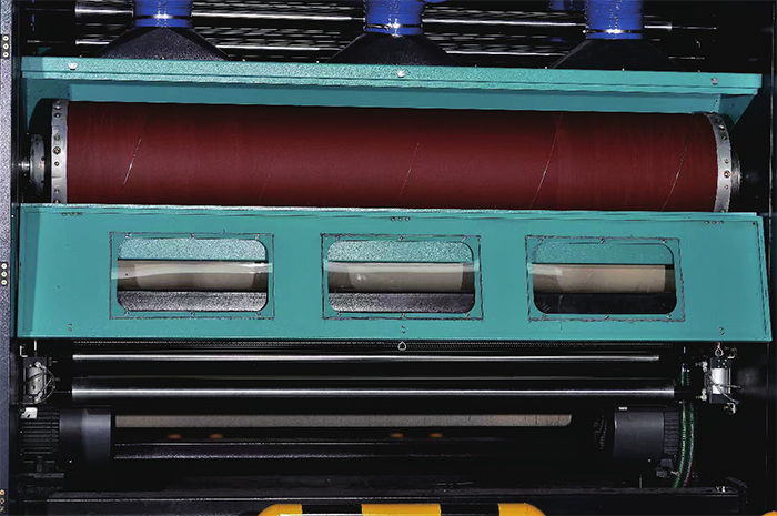 為了加強刷毛時織物和機器的清潔,刷毛單元裝有除塵裝置,將灰塵雜質(zhì)有效地收集在防塵罩中。